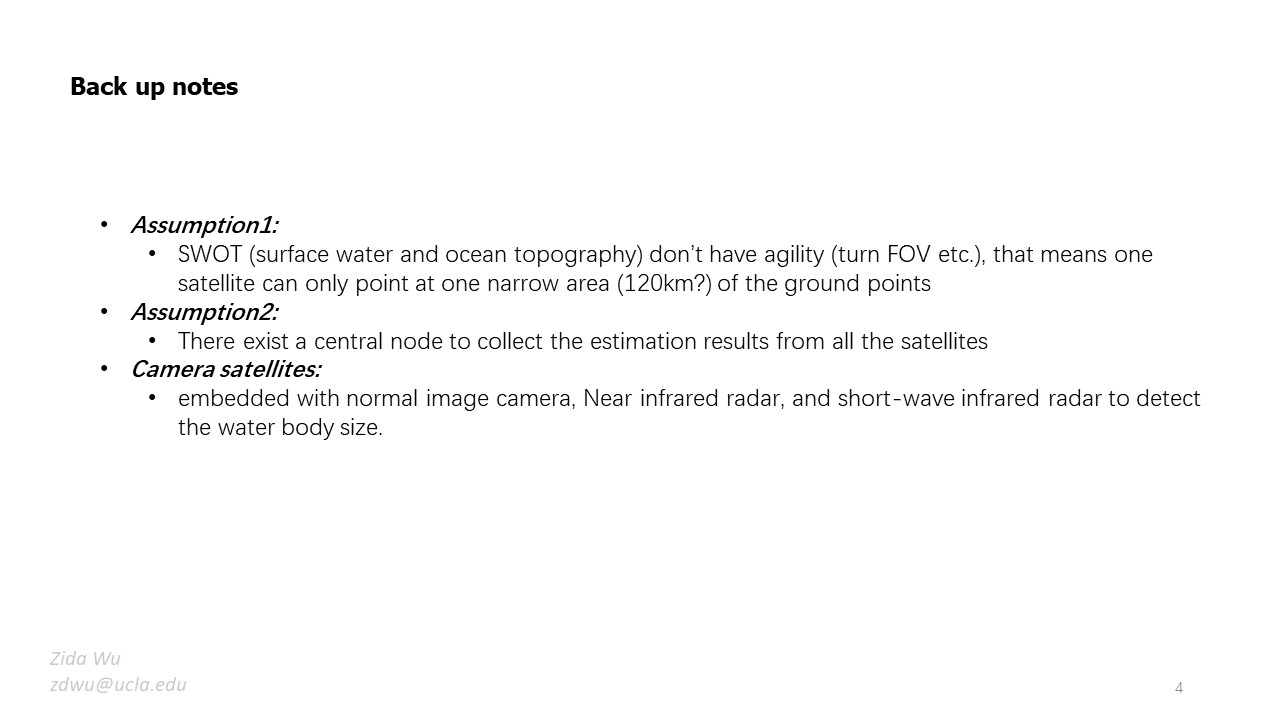 P1: big picture of current stage\ P2: how to fit current problem into our previous work. (in single agent view)\ P3: problems need to be solved for decentralized satellites. \ P4: backup notes.\