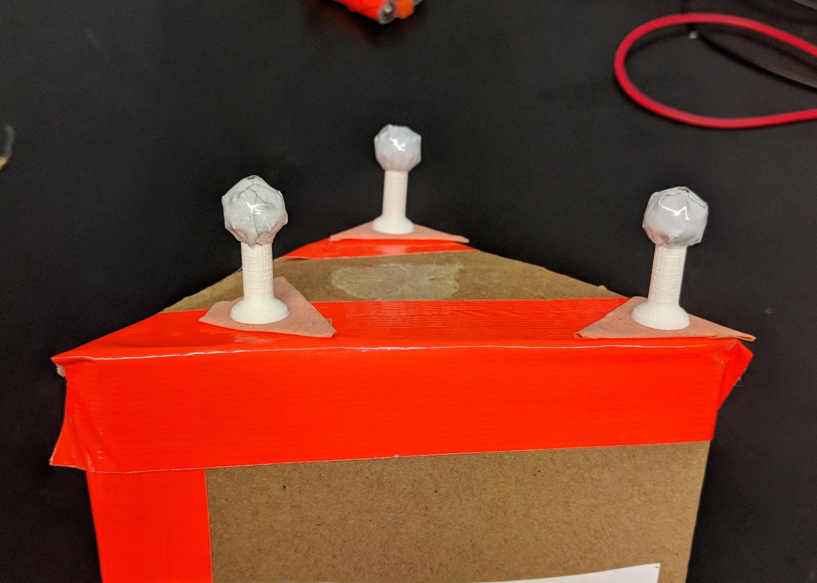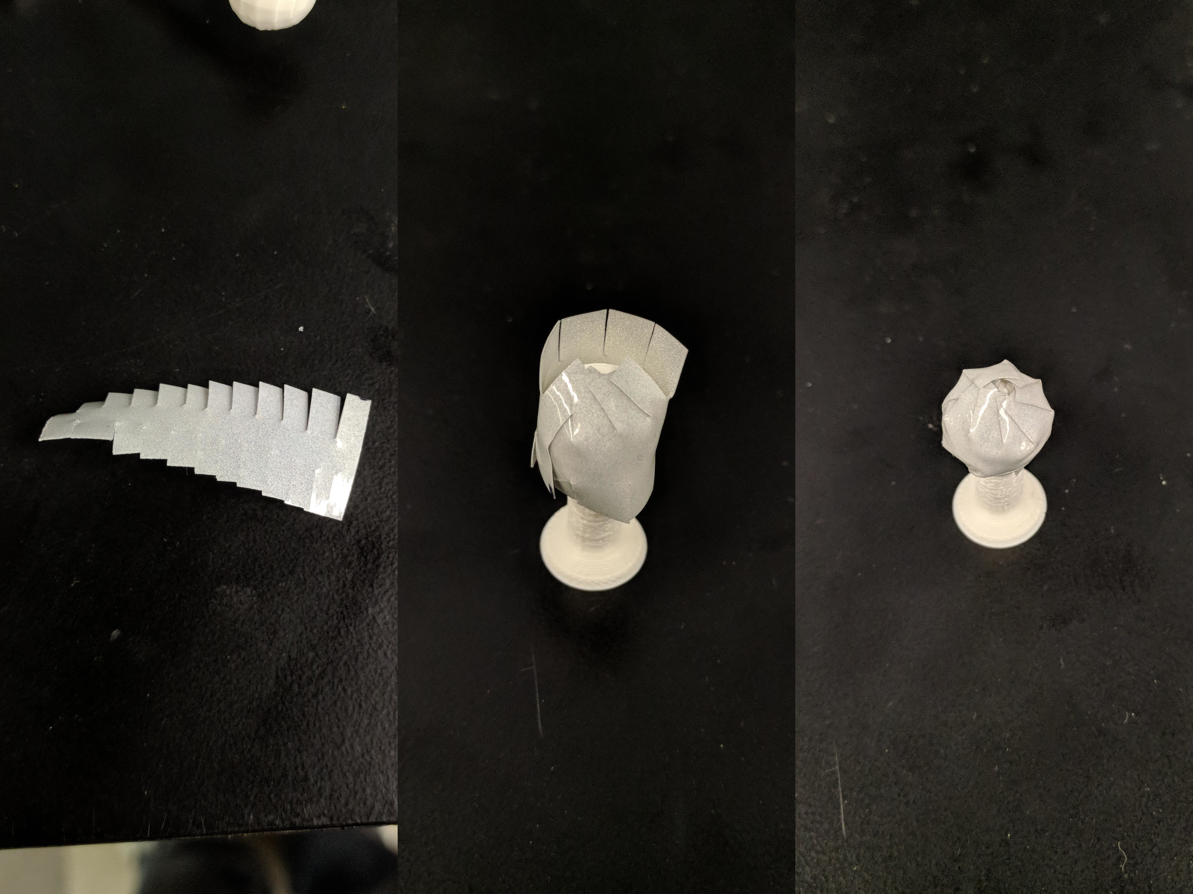 There were two main options I considered for the structure of the markers. The first thing I tried was to copy the existing Optitrack markers as closely as possible and apply some 3M retroreflective tape on the ball section.