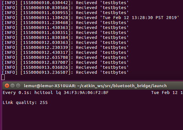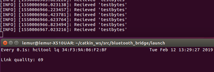 Ideally the link quality would be derived using Bluetooth since we had already written ROS packages to send messages and record RSSI. However, although the Bluetooth protocol provides a link quality indicator, it did not meet our needs.