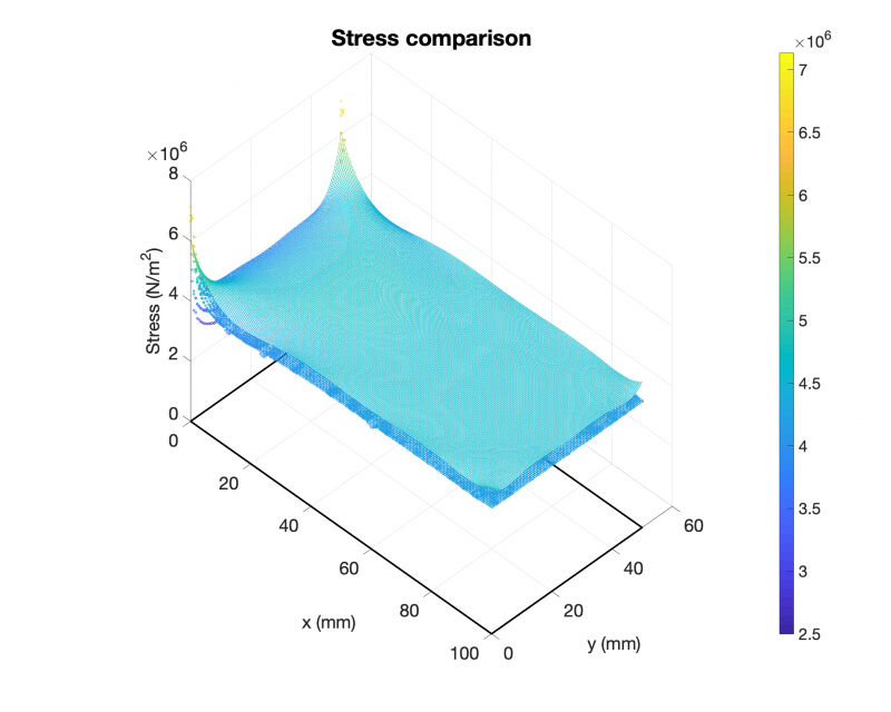 - Stress distribution matches well enough. Results are close, which means a lot.