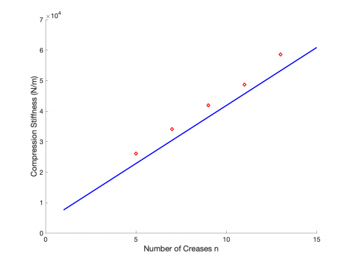 - Note: I planed to do one experiment to test the case when alpha = 180 deg, which gives us a flat square. Based on the buckling analysis I researched on a month ago, the approximate buckling load for the square is around 2.5N, which matches the behavior I noticed during the compression experiment. However, the experiment setup / machine can not capture the the stiffness for that small load and moving range. So, no cases at alpha = 180 deg are included in the result.