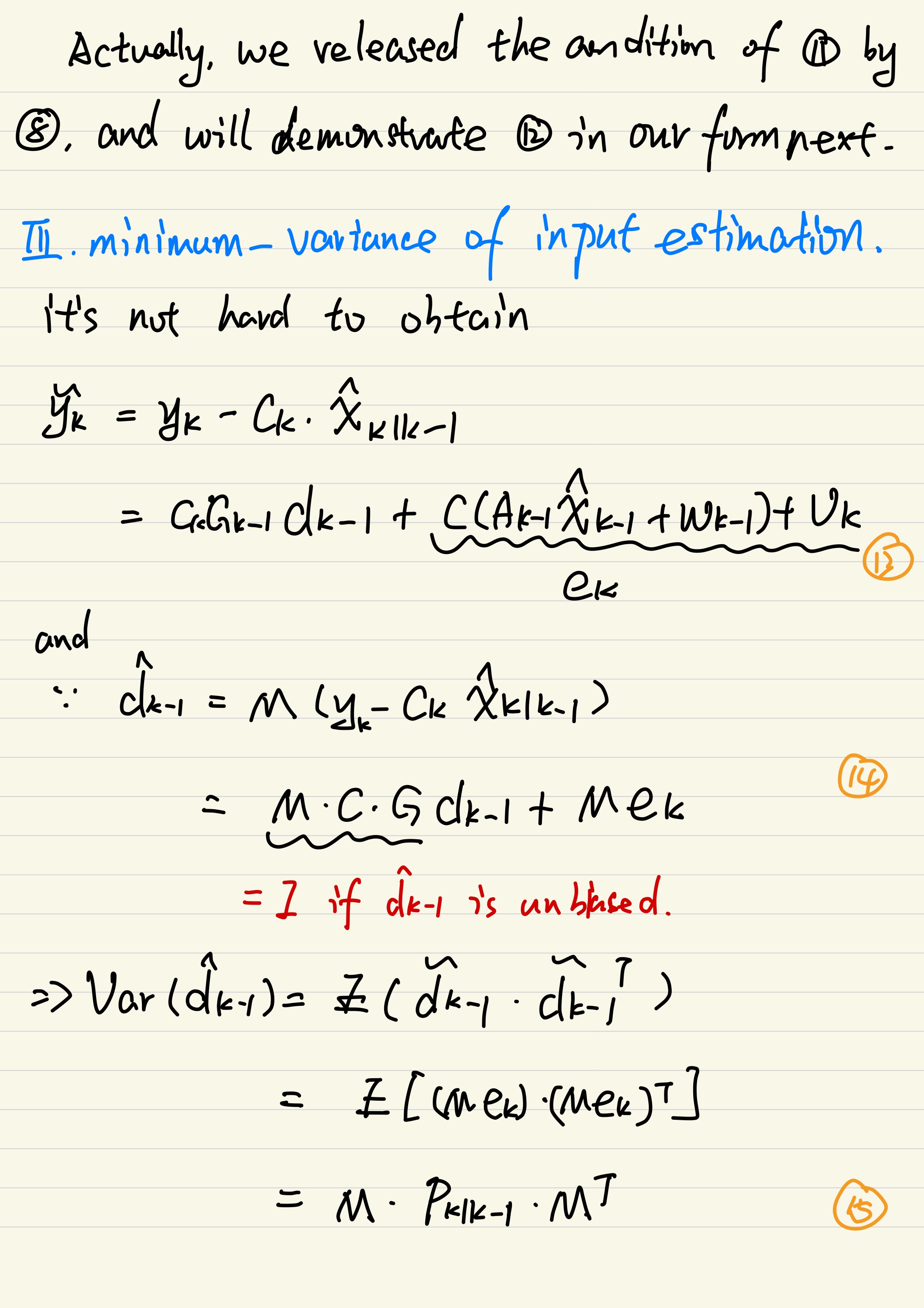 [Handwriting] Derivation of Input Unbiased and Minimum-variance Estimation