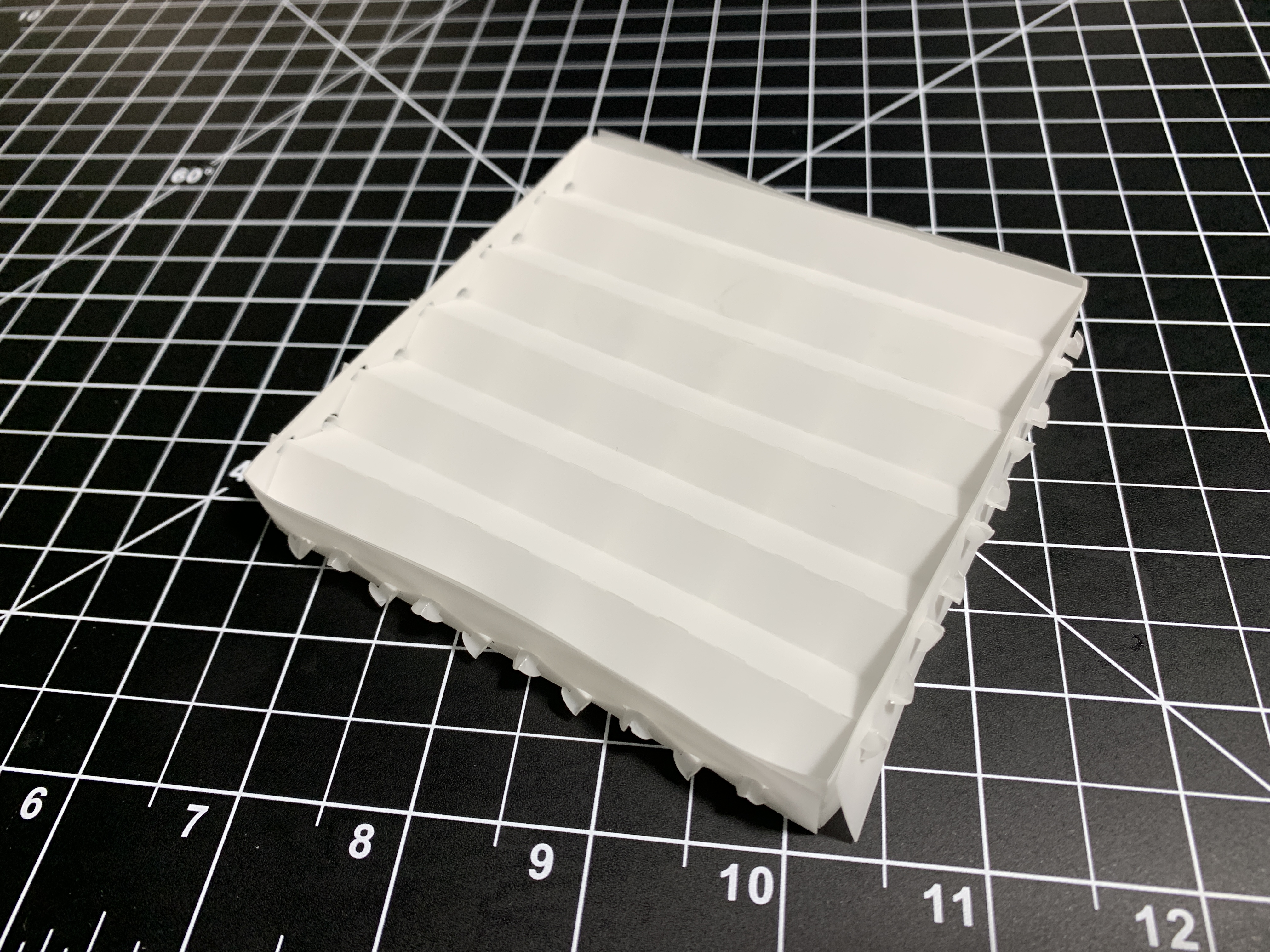 Chang Liu origami robotsUsing the analytical model developed last week, with certain geometry constraints, stiffness of the proposed orthogonally assembled double-layer corrugated structures have been evaluated. Using design parameters optimized from maximum stiffness requirements, a rectangular shape sample and a circular shape sample have been built.