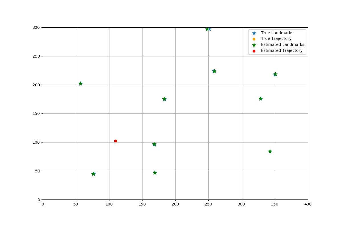 This demo works properly as expected (although there are some discrepency between true and estimated landmarks), however, it is based on an ideal direct observation.