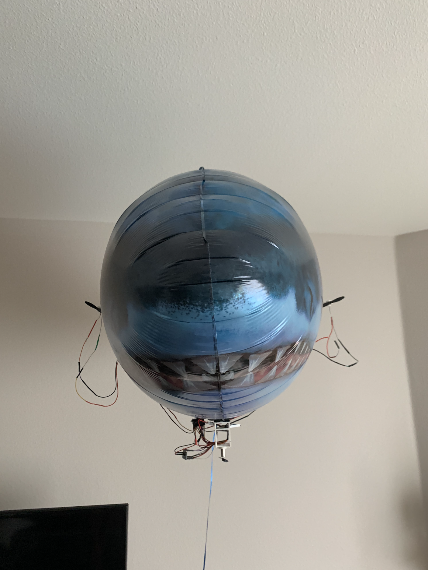 Jiahao(Nick) Li blimp fly test motor distributionIn the previous test, the result shows that the turning ability of the configuration used for the shark robot is not good. The reason is the turning torque generated by two motors located beneath the balloon is not large enough.
