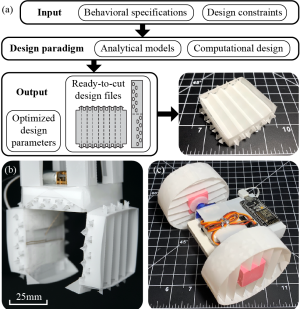- Solutions: I have added demo figures into Fig. 1. I have also added one more paragraph in Intro section to discuss about the robotic side of contribution, which includes the robot car demo (moved it to the intro and concisely described it among other robotic applications). Last point in contributation section is expanded. "\textcolor{blue}{Beyond the foldable gripper, this computational design paradigm can be applied to boarder robotic community. To name a few: first, it can be applied to design various shapes of OADLC mechanisms with different mechanical specifications. For example, an origami-inspired foldable car derived from author's previous work \cite{mehta2014cogeneration} can be enhanced to gain more load-bearing capacity by replacing laminated wheels with computationally designed circular OADLC wheels (Fig.~\ref{fig: Intro_Figure}(c)). Second, it can be used to replace and customize building components for better performance. For example, in Liu \textit{et al.}, plastic corrugated sheets were used to build light weight self-folding robots \cite{liu2019self,liu2017self}. Though the corrugated sheets functioned well, they could be further customized to achieve desired rigidity while minimizing weight.}"
