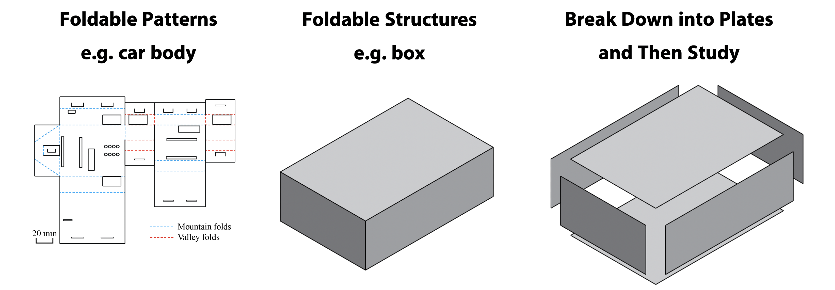 My approach: when having a foldable pattern what can be folded into a cuboid (with six rectangular plates), we will study each plate under load individually.