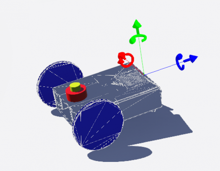 1.2. Using paperbot, with thin wheels. The car can not climb the hill or pass the bumps, due to non-sufficient friction on the wheel. Therefore, I changed wheels to cylinder and the car can move across bigger bumps as expected (see examples in the following sections).