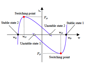 Based on what happened in the experiments, we found that there may be some other definitions of snap-through other than reaching the critical switching point, depending on whether the system is under force control or displacement control. For this reason, new model of the mechanical logic system might be needed, but this model would be really similar to the one we used before, as all we need to change is the expression of the force and displacement at the point the bistable beam snaps through. Specifically, we are currently working on precisely determining the exact point snap-through occurs in any given system and modeling it.