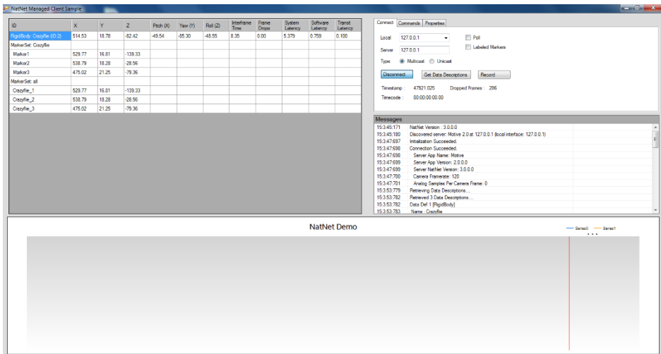Natnet offers a good GUI for capturing and recording required data. You should be able to see something like below:
