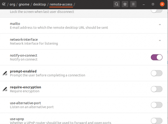 - After setting this, the screen still cannot be shared. You need to configure dconf-Editor, using the following commands: