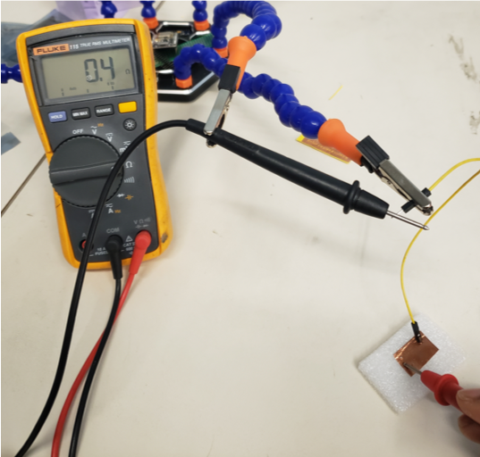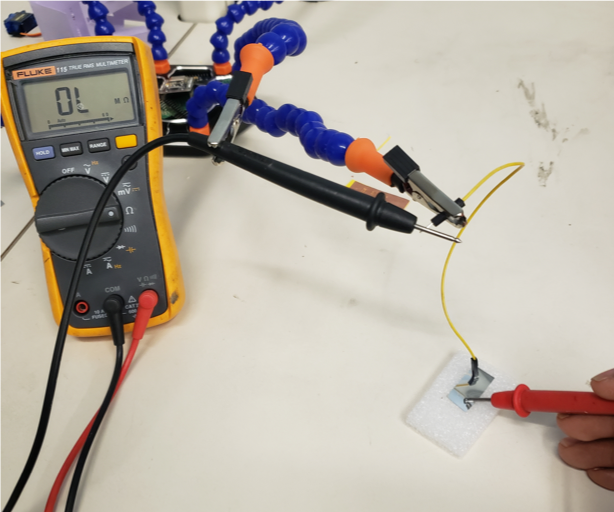 Measuring resistance on the copper tape: