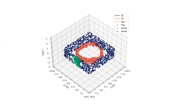 The above figure shows all trajectories, and landmarks (lmk, navy) and feature points (plmk, green).