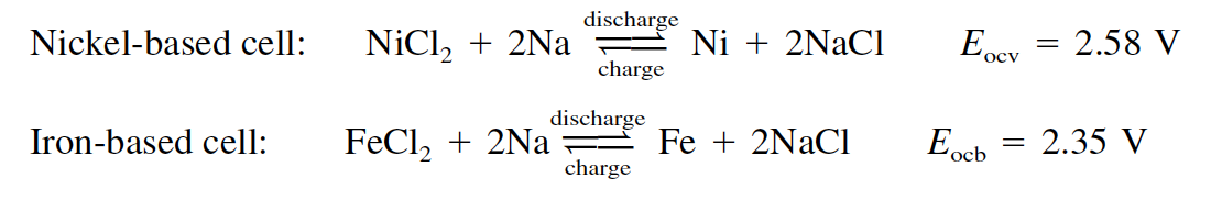 For our printable robots, we are planning to integrate printed battery as on-baord power. Currently, we choose Na-ion battery given the relative high voltage, low resistance, low cost, and high drain current, etc. There are two main types of Na-ion battery, i.e. sodium/sulfur battery and sodium/metal-chloride battery. The overall cell reactions for these two chemistries are as follows: Sodium/sulfur battery: