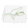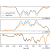 The below figures show the ground truth (gt, black), a noisy dead reckoning signal (dr, red), and an NLS optimization using the noisy dr as a seed, and IMU data to constrain relative motion. The above figure shows all trajectories, and landmarks (lmk, navy) and feature points (plmk, green). ...