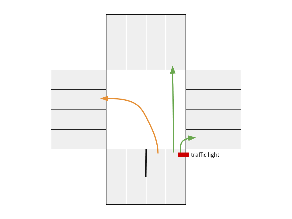 - Traffic lights separate the left-turn traffic from others. Better efficiency?