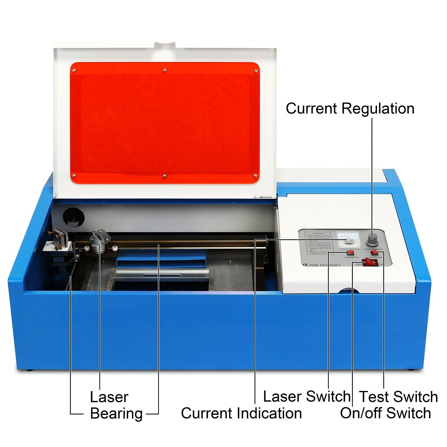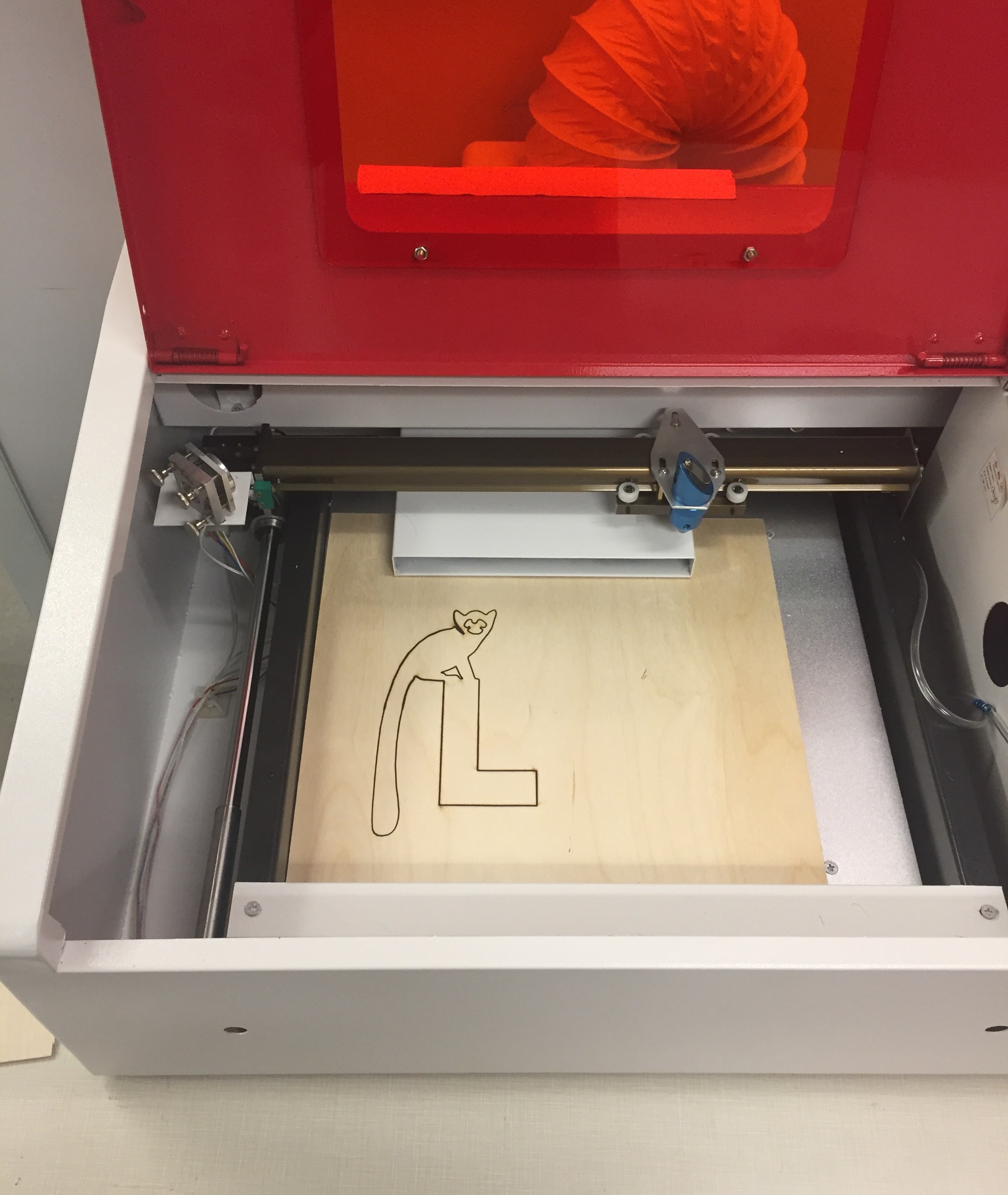 We have a new machine in our lab! It is a laser cutter, which can be employed in both carving and cutting works. This laser engraver is equipped with one 40W water cooling laser tube, high precise stepping motors, high quality control board. It employs an USB port and thus can be connected to your laptop or desktop. By the support of included software, LaserDRW, this machine can work well with multiple graphic formats including lyz/bmp/jpg.