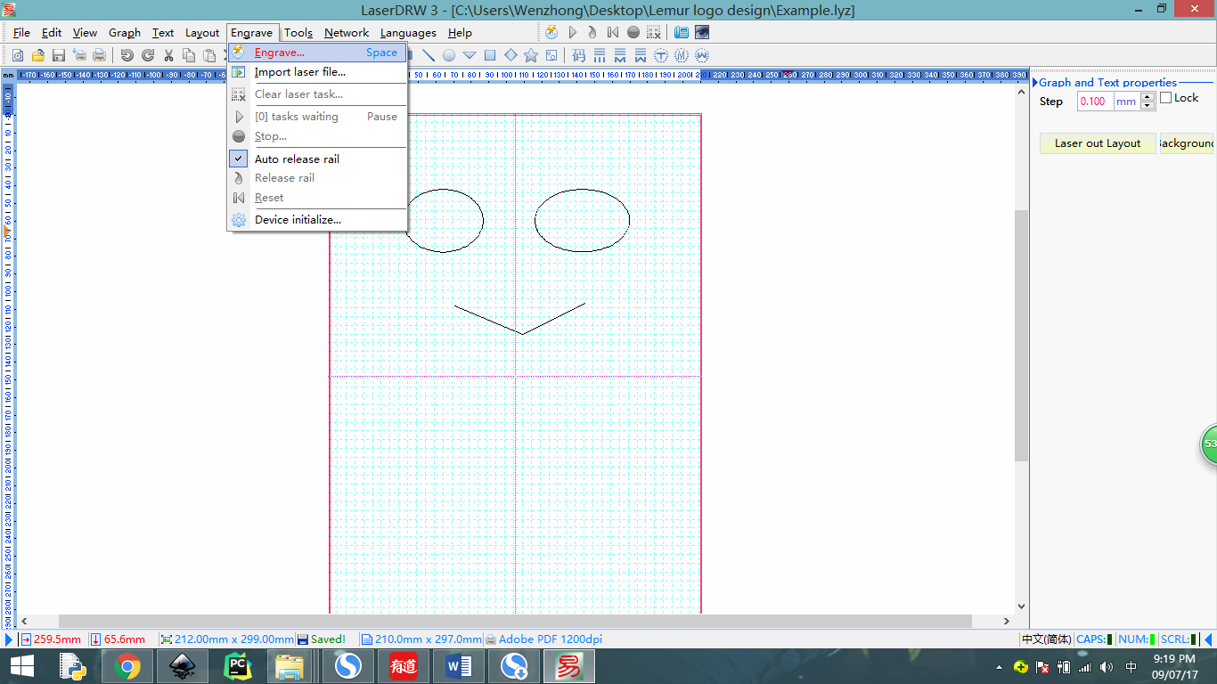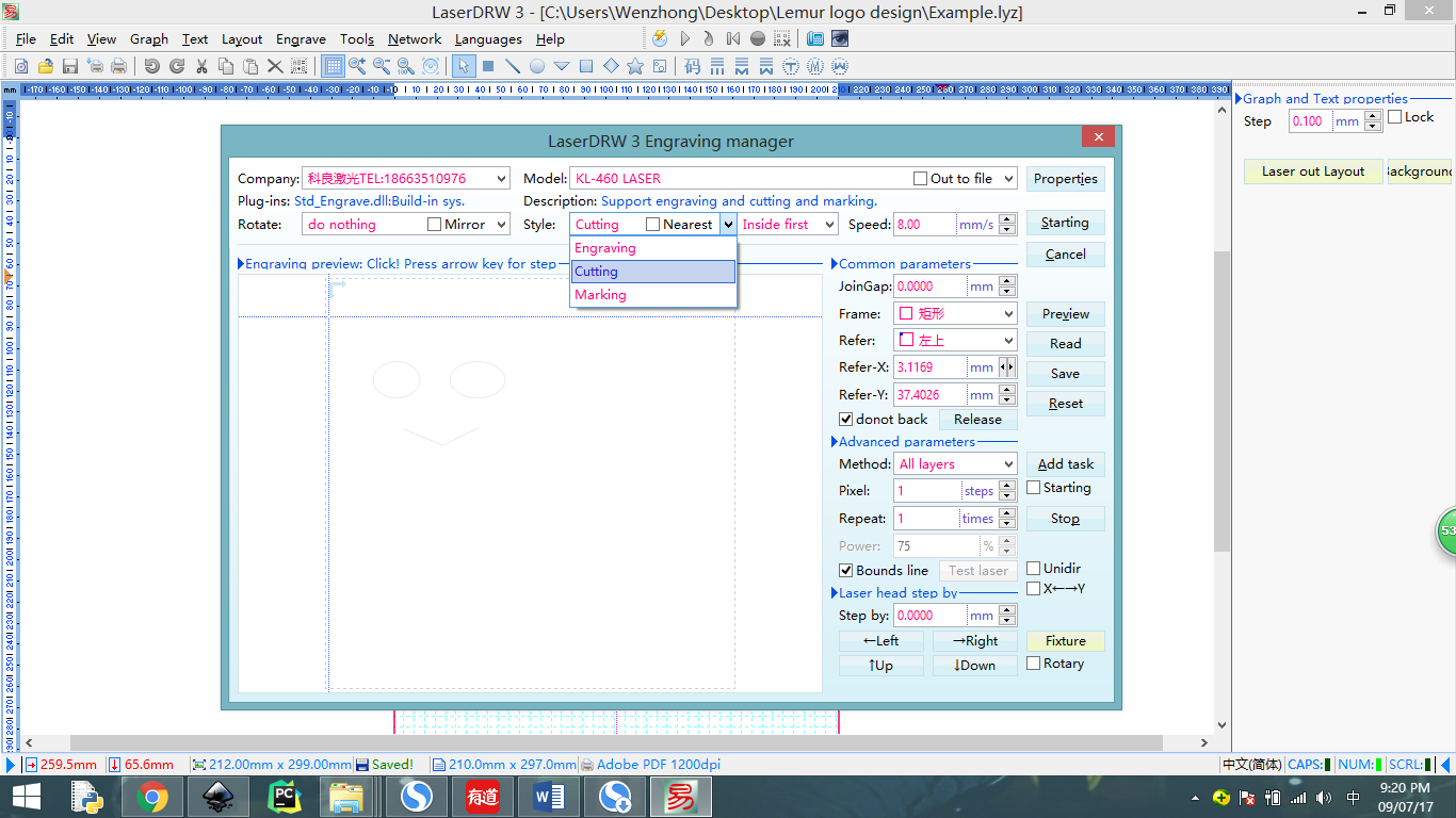 10) Click ‘Starting’ in LaserDrw, then you will have your masterpiece in minutes;