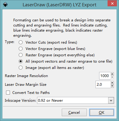Software: Inkscape, Inkscape extension, LaserDRW