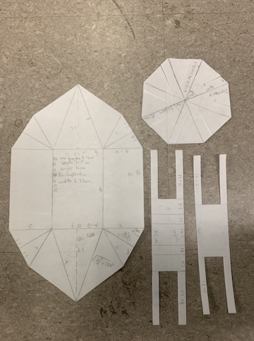 Once we finalized the design, we created plastic templates for each component of the boat, the chassis, two paddlewheels, and the servo holders. Before we made the templates in RoCo, we had to write out equations for the geometrical relations between the faces.