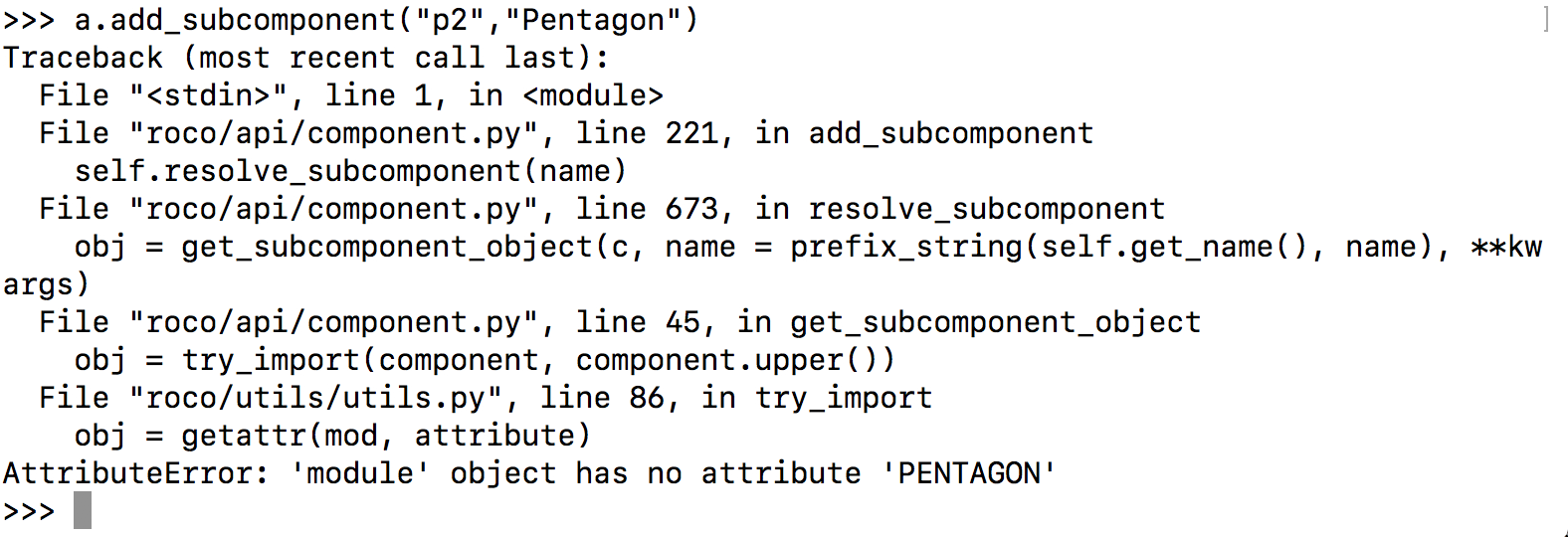 Figure 3: This is the error message I got when I tried to create a Pentagon component.